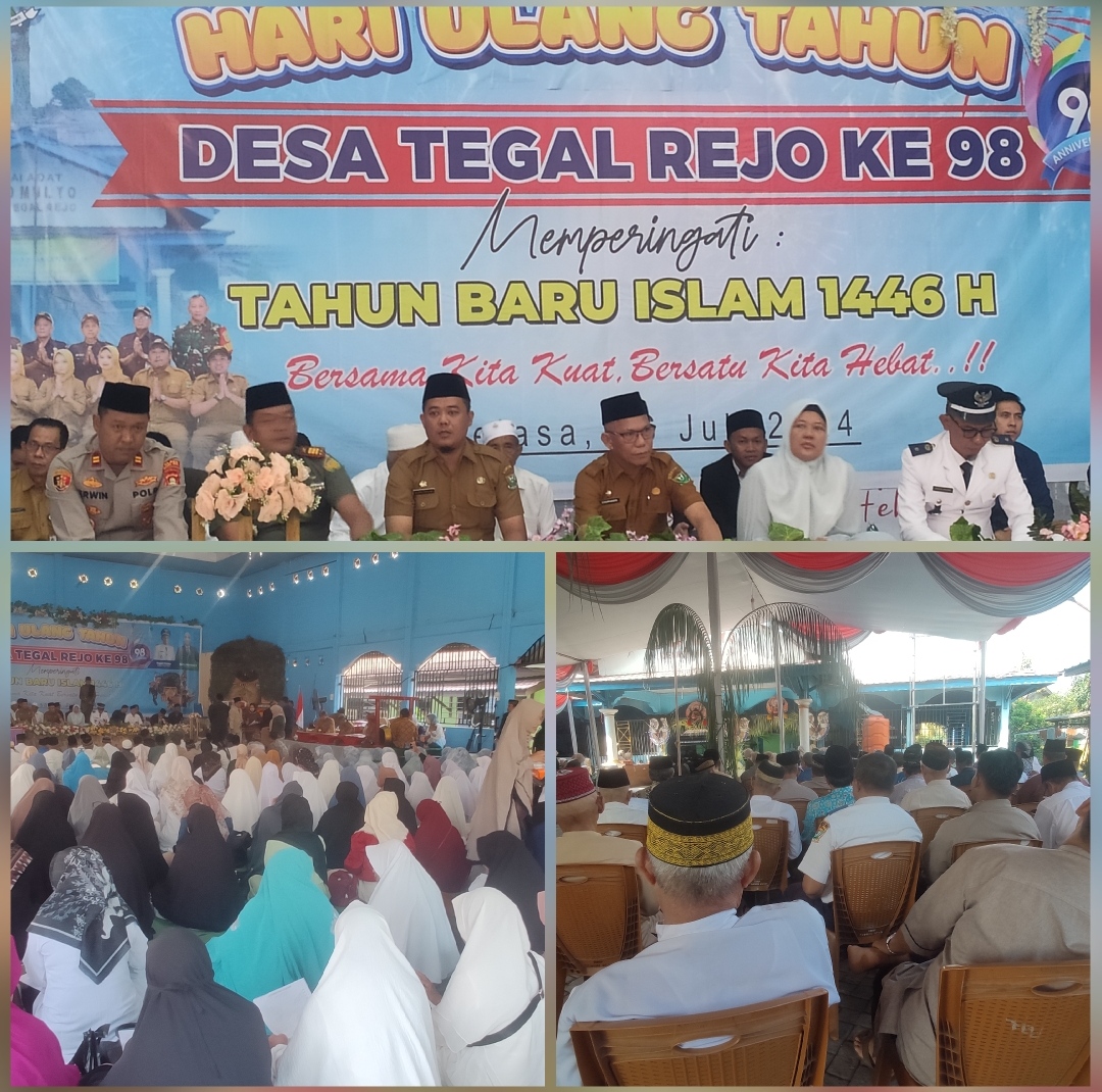 ‘Apresiasi tinggi atas giat mempertahankan kebudayaan dan keagamaan yang selalu di lestarikan masyarakat Desa Tegal Rejo, semoga kedepan apa yang di cita-citakan dapat terlaksana dan saya berpesan, mari kita jaga Desa ini agar selalu aman dan Kondusif, “Ungkap nya.