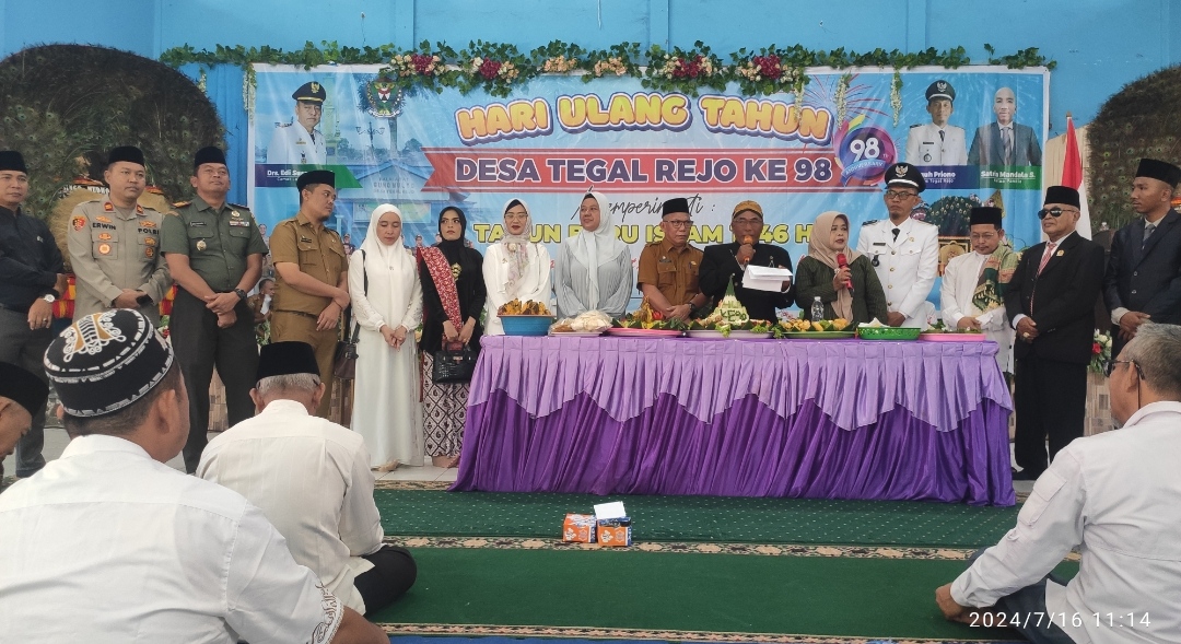 ‘Apresiasi tinggi atas giat mempertahankan kebudayaan dan keagamaan yang selalu di lestarikan masyarakat Desa Tegal Rejo, semoga kedepan apa yang di cita-citakan dapat terlaksana dan saya berpesan, mari kita jaga Desa ini agar selalu aman dan Kondusif, “Ungkap nya.