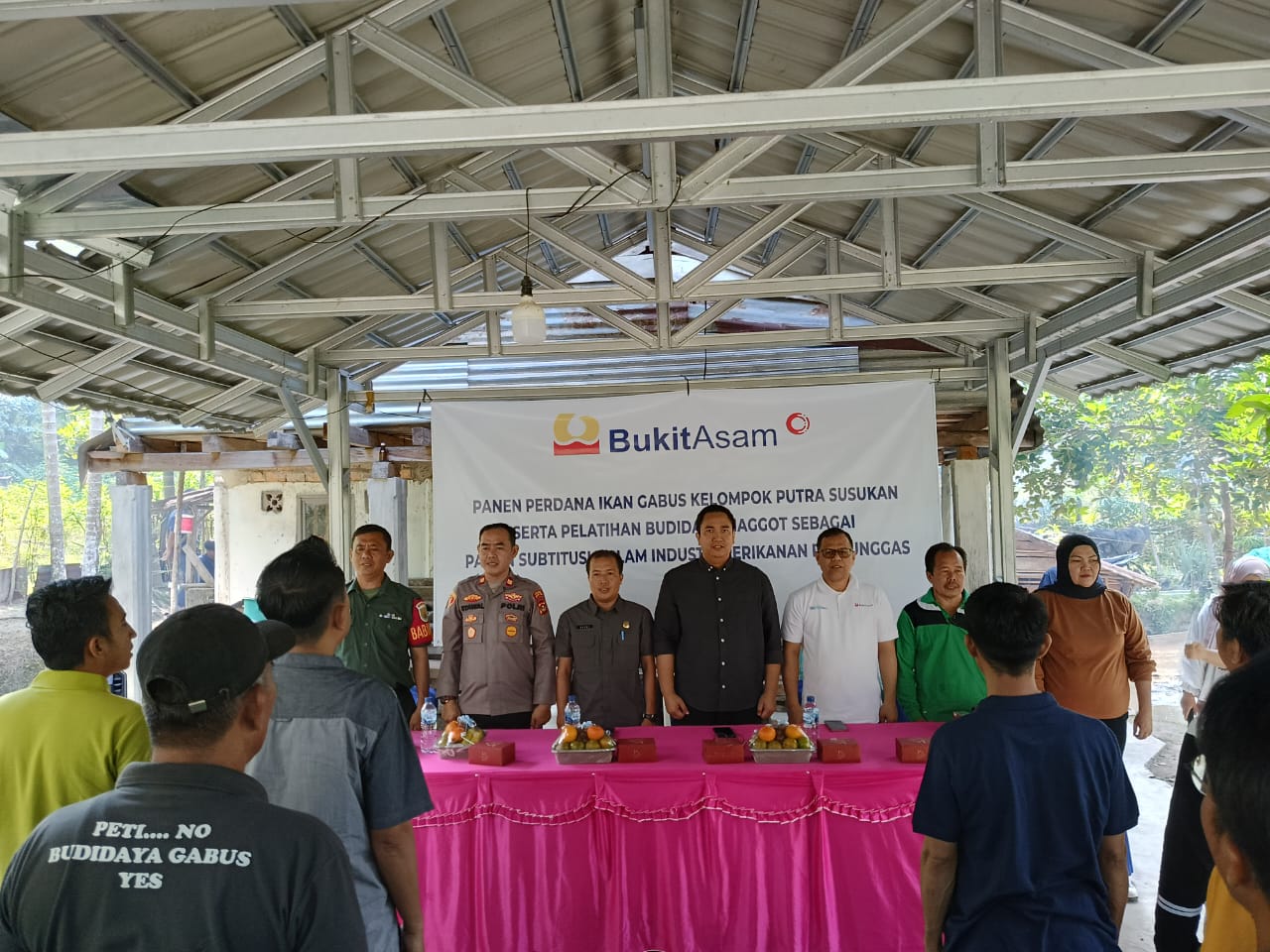Muara Enim – Panen Perdana Ikan Gabus Kelompok Putra Susukan serta pelatihan budidaya maggot sebagai pakan subtitusi dalam Industri Perikanan dan Unggas di Desa Tanjung Agung Kecamatan Tanjung Agung Kabupaten Muara Enim.