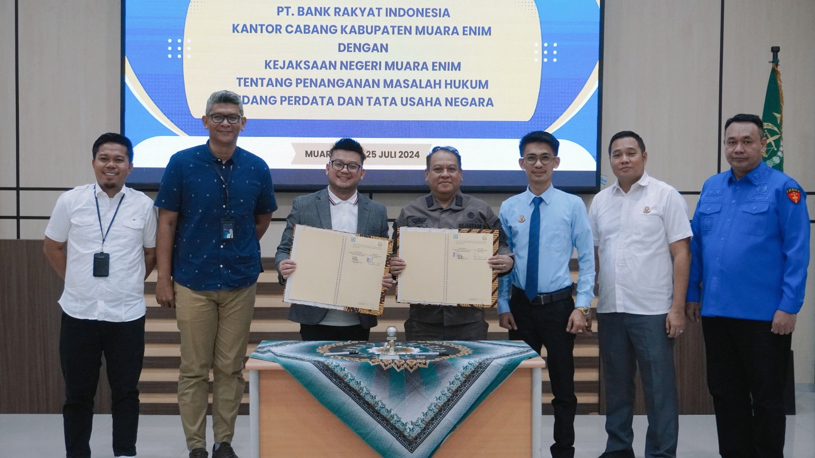 Muara Enim – Telah dilaksanakan Penandatanganan Memorandum of Understanding (MoU) antara PT. Bank Rakyat Indonesia kantor cabang Muara Enim dengan Kejaksaan Negeri (Kejari) Muara Enim tentang Penanganan Masalah Hukum Bidang Perdata & Tata Usaha Negara (DATUN).