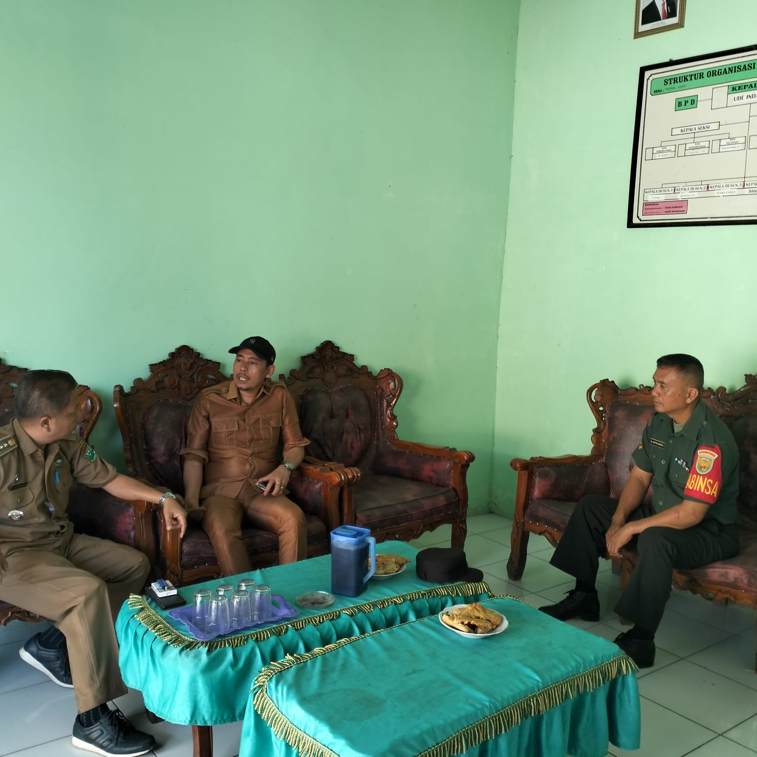 Muara Enim – Babinsa Koramil 404-05/Tanjung Enim, Kodim 0404/Muara Enim Serda Budi Supriyanto melaksanakan Komunikasi Sosial (Komsos) dengan Camat Tanjung Agung Cholid Tri Aquarian S.STP.,M.Si dan kades Tanjung Agung Ude Indayadi SH, bertempat di kantor Desa Tanjung Agung, Kabupaten Muara Enim