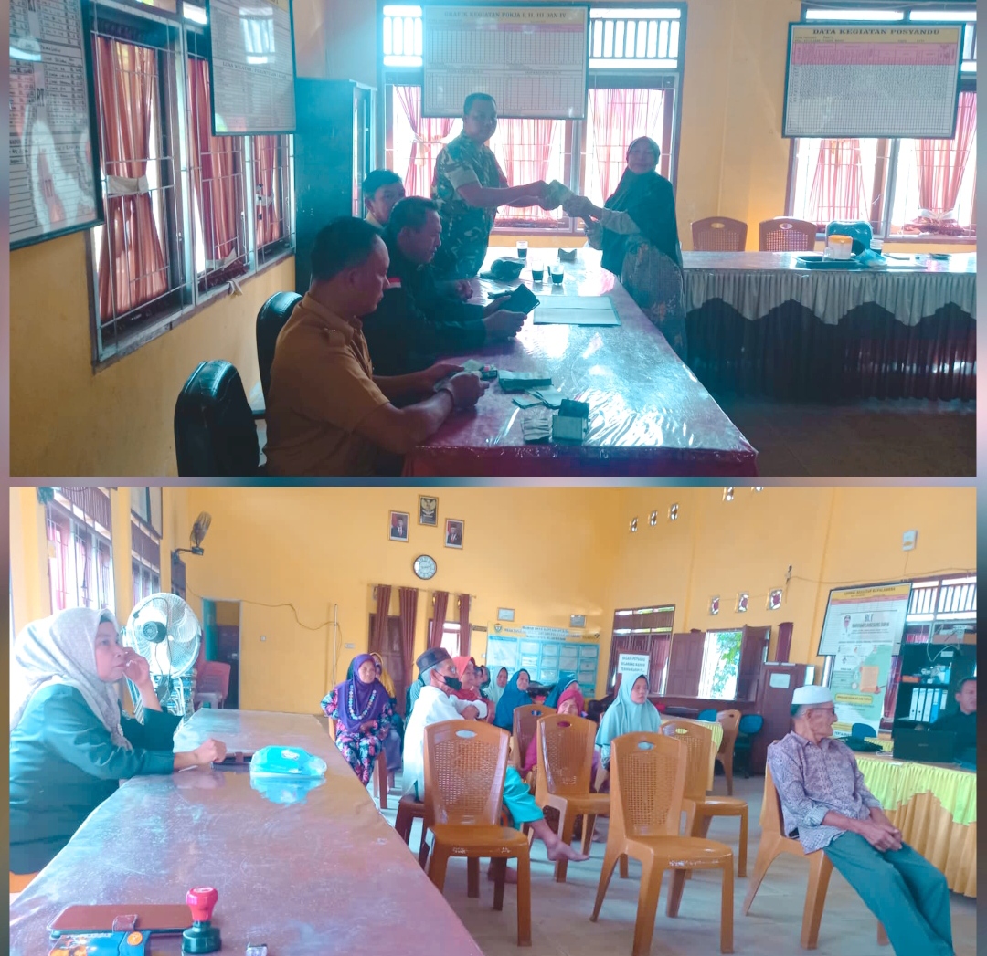 Muara Enim – Serda Amrul Babinsa Koramil 404-05/Tanjung Enim, 0404/Muara Enim lakukan Pengawalan dan Pendampingan (Walping) giat Penyaluran Bantuan Langsung Tunai Dana Desa (BLT DD) Bulan Juli dan Agustus sebesar RP. 600.000,bertempat di Desa Tanjung Bulan Kecamatan Tanjung Agung Kabupaten Muara Enim.