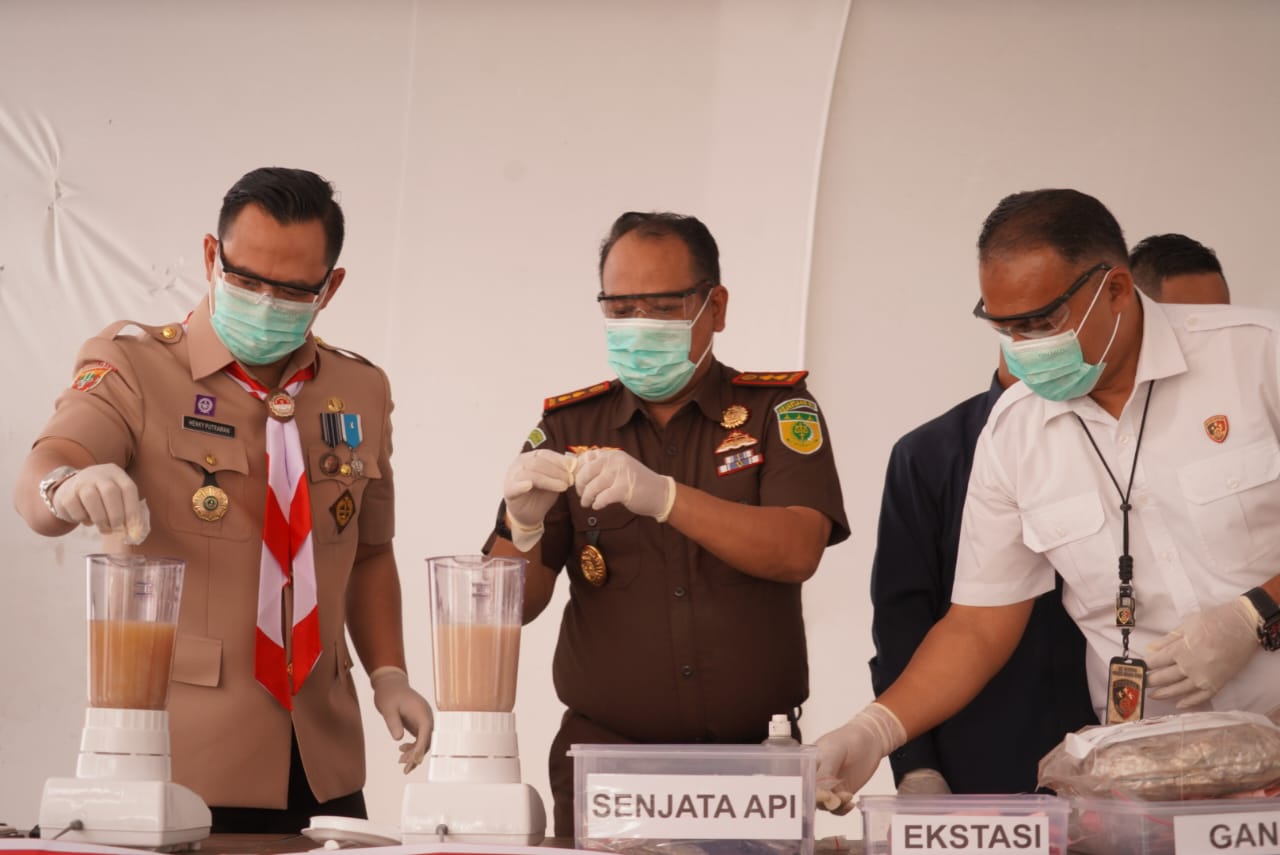 Adapun pada pemusnahan barang bukti berupa narkotika senilai Rp.392 juta ditambah sejumlah senjata api ilegal tersebut, Pj. Bupati menegaskan dukungan terhadap Aparat Penegak Hukum (APH) memelihara keamanan dan ketertiban khususnya memberantas pelaku dan peredaran narkotika di wilayah Bumi Serasan Sekundang.