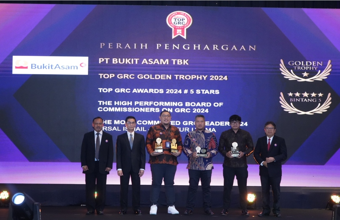 Keempat penghargaan yang diraih, antara lain TOP GRC Golden Trophy 2024, TOP GRC Awards 2024 # 5 Stars, The High Performing Board of Commissioners on GRC 2024, serta The Most Committed GRC Leader 2024 untuk Arsal Ismail, Direktur Utama, PT Bukit Asam Tbk (PTBA).