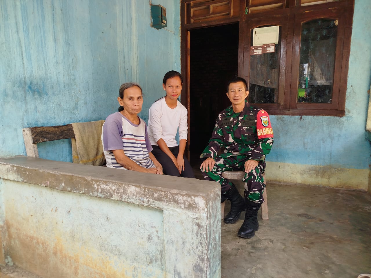 Muara Enim – Babinsa Koramil 404-05/Tanjung Enim, Kodim 0404/Muara Enim Sertu Marhadi mendatangi Rumah Bu Samsidar Warga Desa Seleman Kecamatan Tanjung Agung Kabupaten Muara Enim.