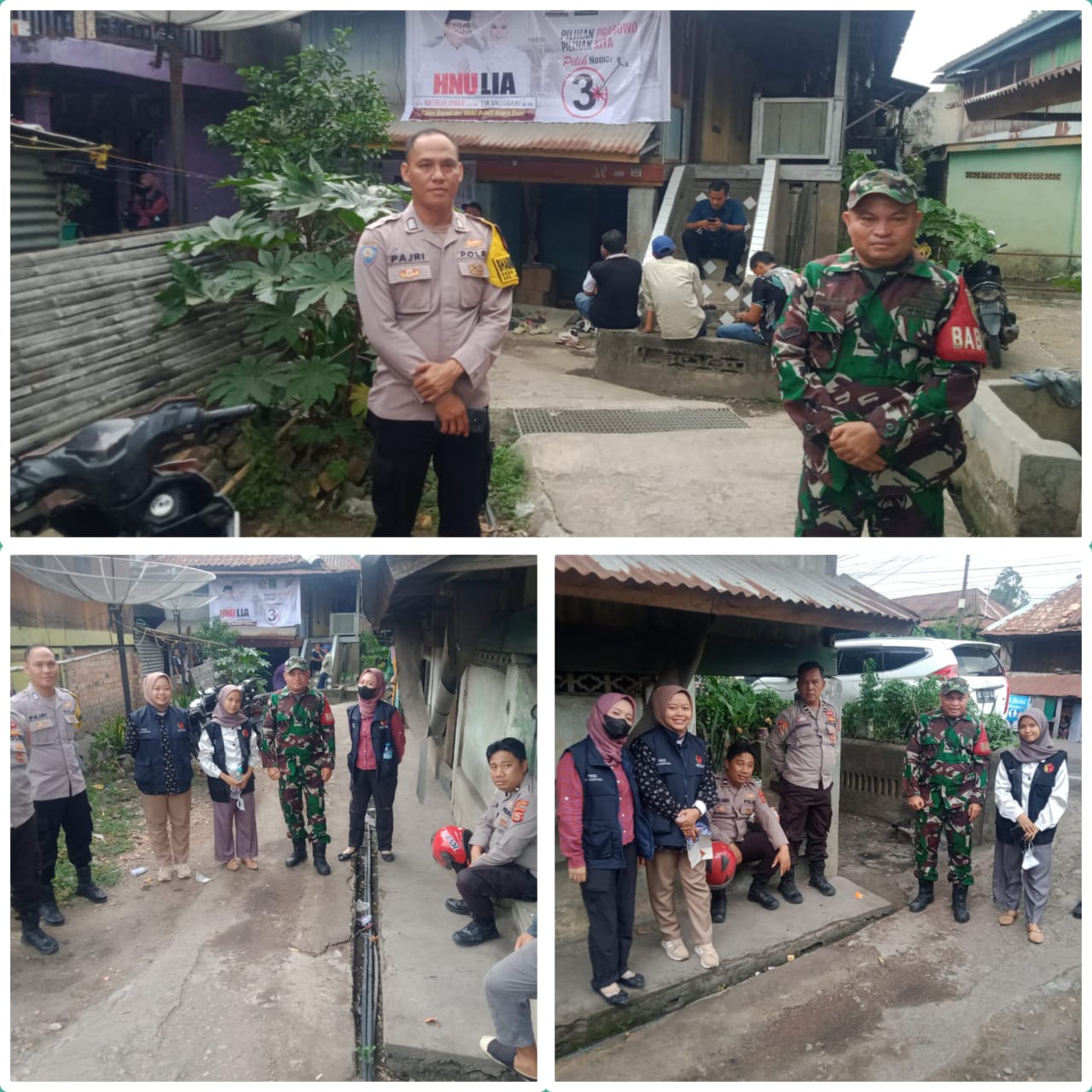 Muara Enim – Serda Amin Syahril Babinsa Koramil 404-05/Tanjung Enim Kodim 0404/Muara Enim lakukan PAM Kampanye Pasangan Bupati – Wakil Bupati Muara Enim Nomor urut 03 bpk.Dr. H Nasrun umar SH.MM Dan ibu Lia Anggaraeni SH MH dan Tim bersama masyarakat seputaran Desa Lingga Kecamatan Lawang kidul Kabupaten Muara Enim.