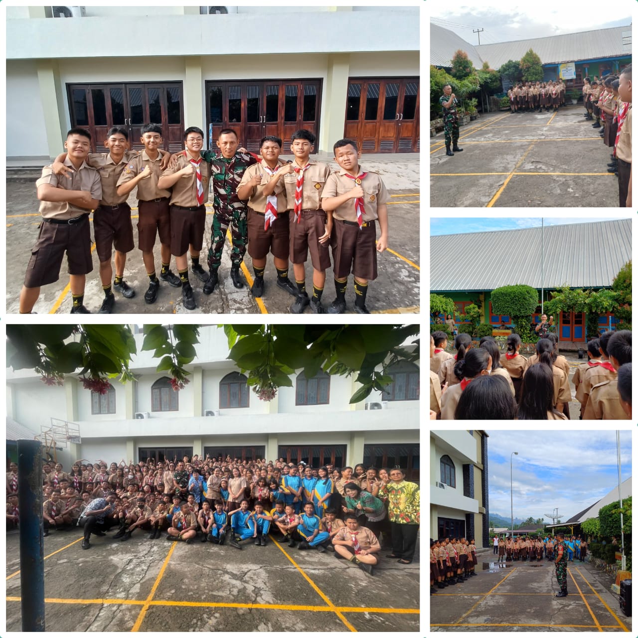 Muara Enim – Bertempat di halaman SMP Xaverius Tanjung Enim Talang Jawa Pasar Tanjung Enim, Serda Imam Udin memberikan pembinaan dan pembekalan anak-anak Pramuka.