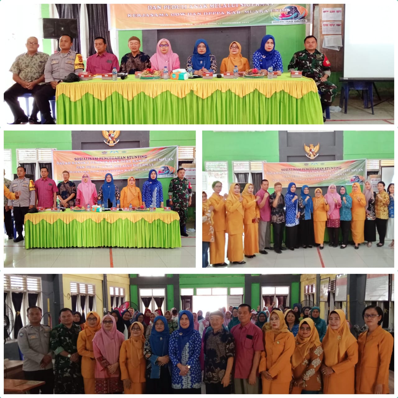 Turut hadir, kepala dinas PPA kab.Muara Enim, Vivi Mariani .S.SI M.BMD.APT, Kasi pelayanan umum, Lawang Kidul, Hj.Medaryani MM, Narasumber dari PERSAGI Muara Enim, Rina SKM.M Kes, Narasumber dari Pokja Bunda Paud Muara Enim DRA Sri Hidayati M.Si, Kades Lingga Hisro, Bhabinkamtibmas dan ketua BPD dan anggota.