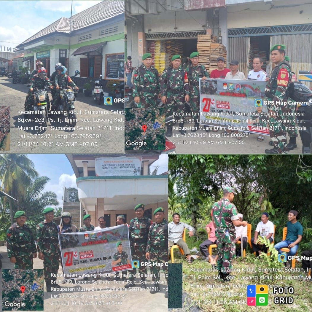 Muara Enim Koramil 404-05/Tanjung Enim meningkatkan patroli dan Sosialisasi dan menghimbau Pemilu damai serta memelihara keamanan dan ketertiban masyarakat.
