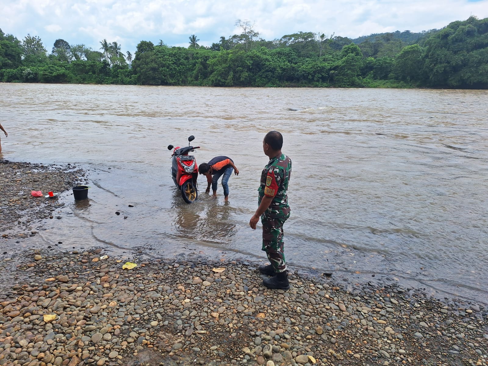 Babinsa Embawang Lakukan Pengecekan Debit Air Sungai Enim