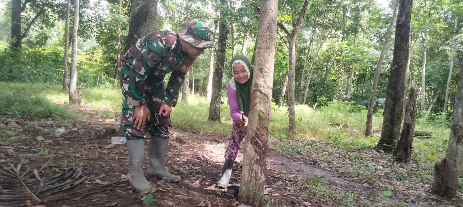 Muara Enim – Serka Agus Fery Irawan Babinsa Koramil 404-05/Tanjung Enim melaksanakan komsos dengan Ibu Rosita Petani Karet warga Desa binaannya, di Desa Matas Kecamatan Tanjung Agung Kabupaten Muara Enim.