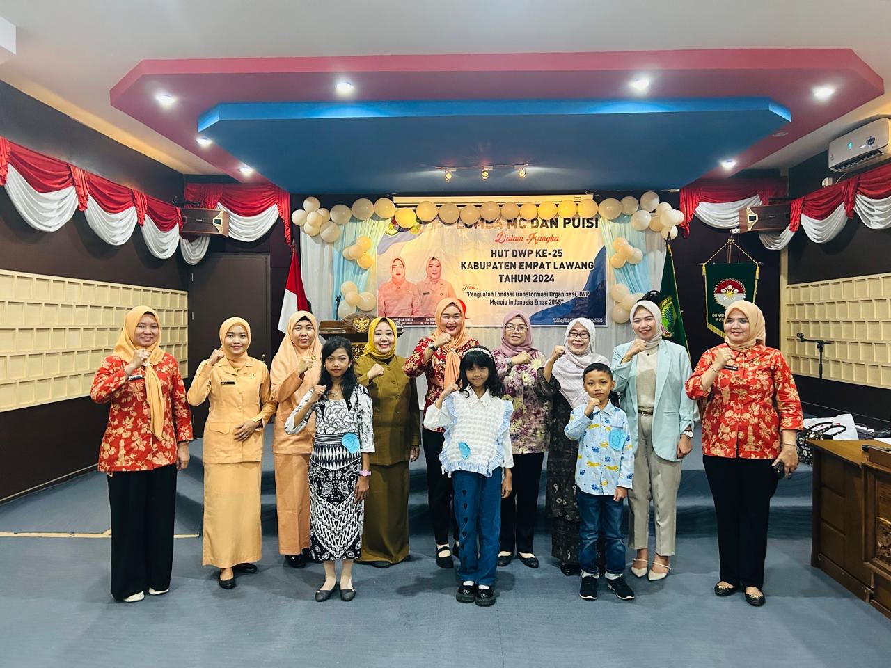 wartabianglala.com, Empat Lawang – Dalam rangka memperingati Hari Ulang Tahun (HUT) ke-25 Darma Wanita Persatuan (DWP) Kabupaten Empat Lawang, digelar lomba baca puisi dan lomba MC tingkat anak-anak. Kegiatan ini berlangsung di Ruang Rapat Madani, Setda Empat Lawang, pada tanggal yang telah ditentukan.