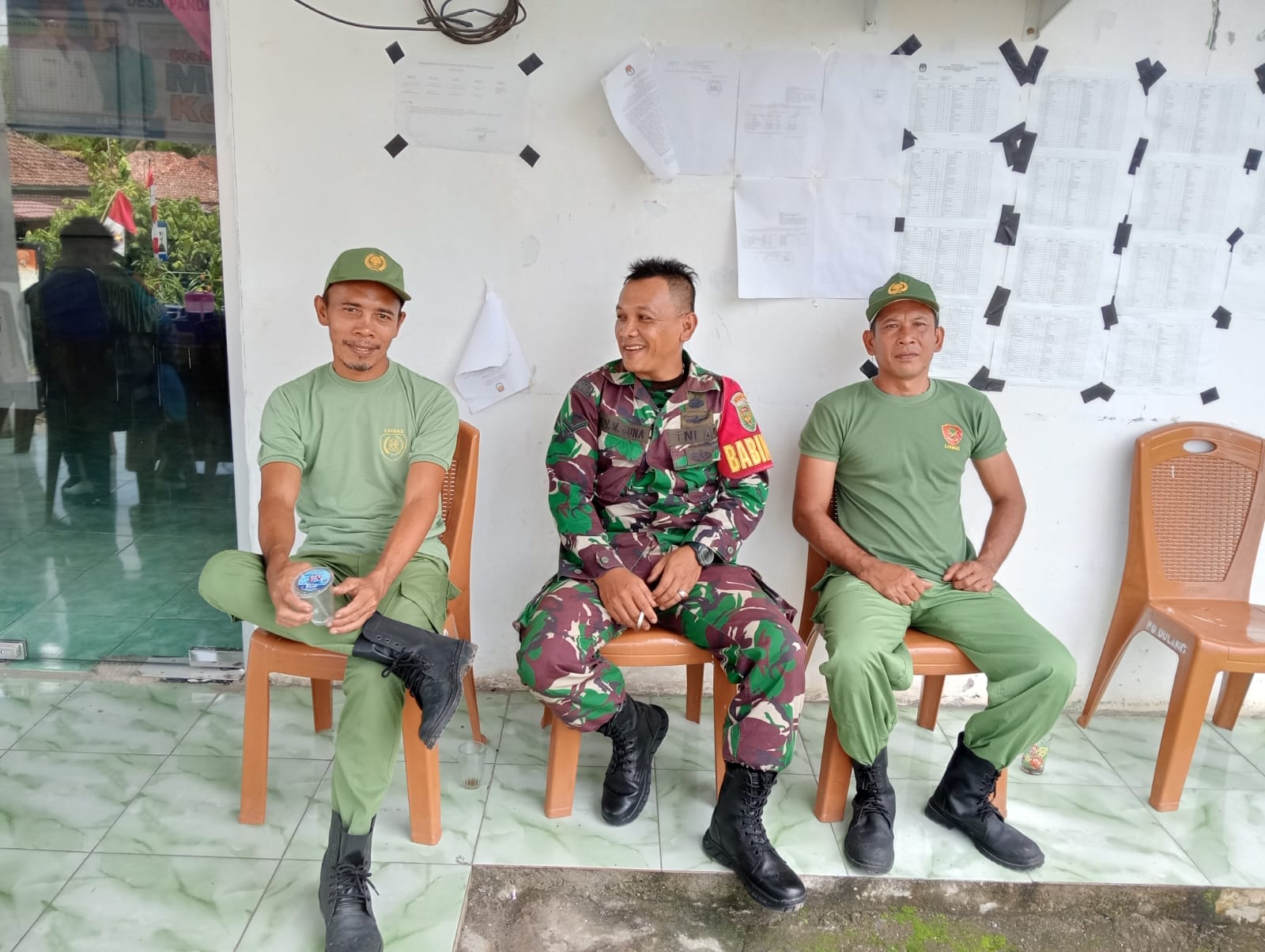 Muara Enim – Babinsa Koramil 404-05/Tanjung Enim Serda Adi M lakukan komsos dengan Linmas di Desa Pandan Dulang Kecamatan Tanjung Agung Kabupaten Muara Enim.