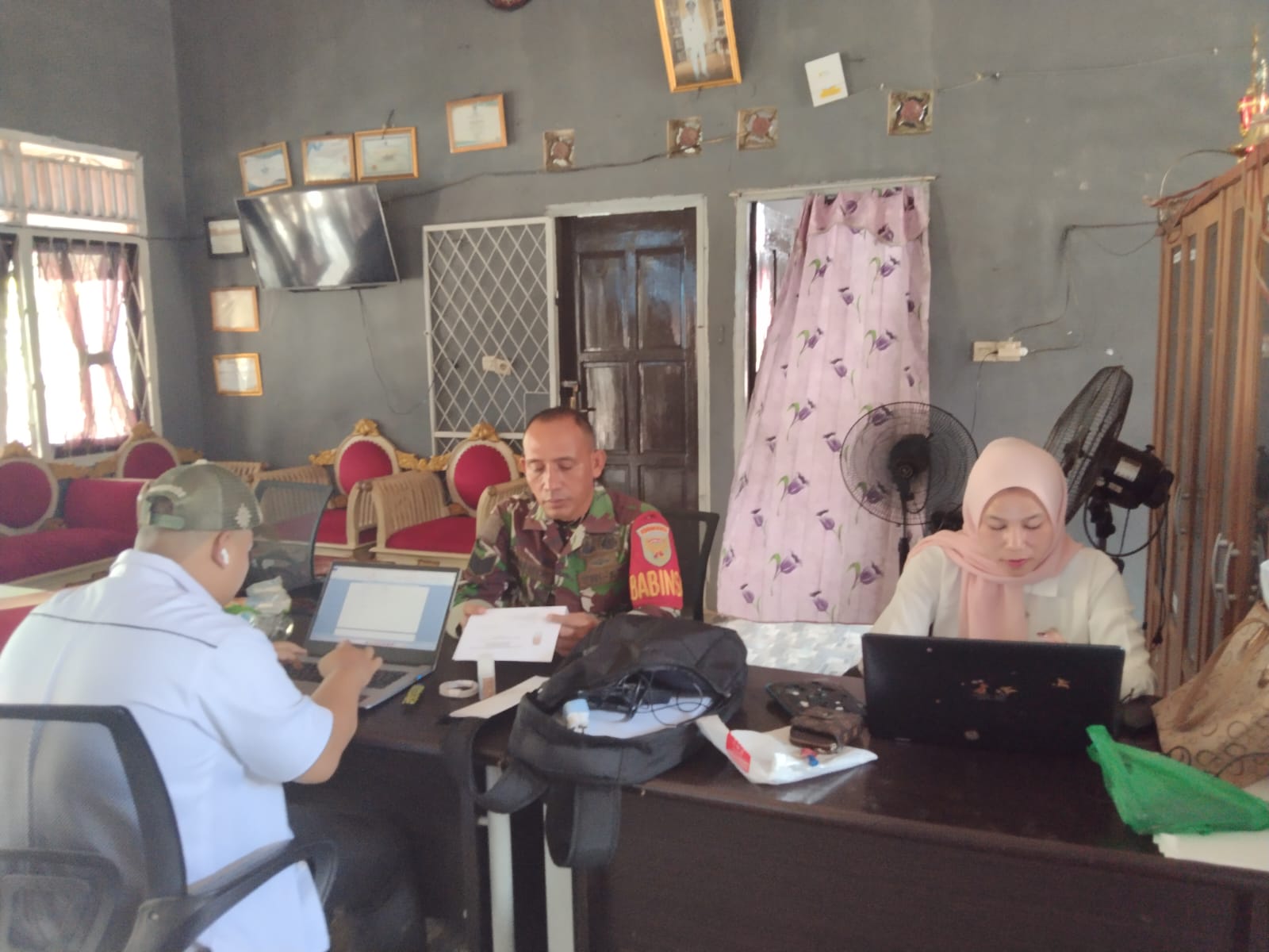 Muara Enim – Serma Robinson Babinsa Koramil 404-05/Tanjung Enim lakukan Komsos bersama Perangkat di Kantor Desa Lebak Budi Kecamatan Panang Enim Kabupaten Muara Enim.