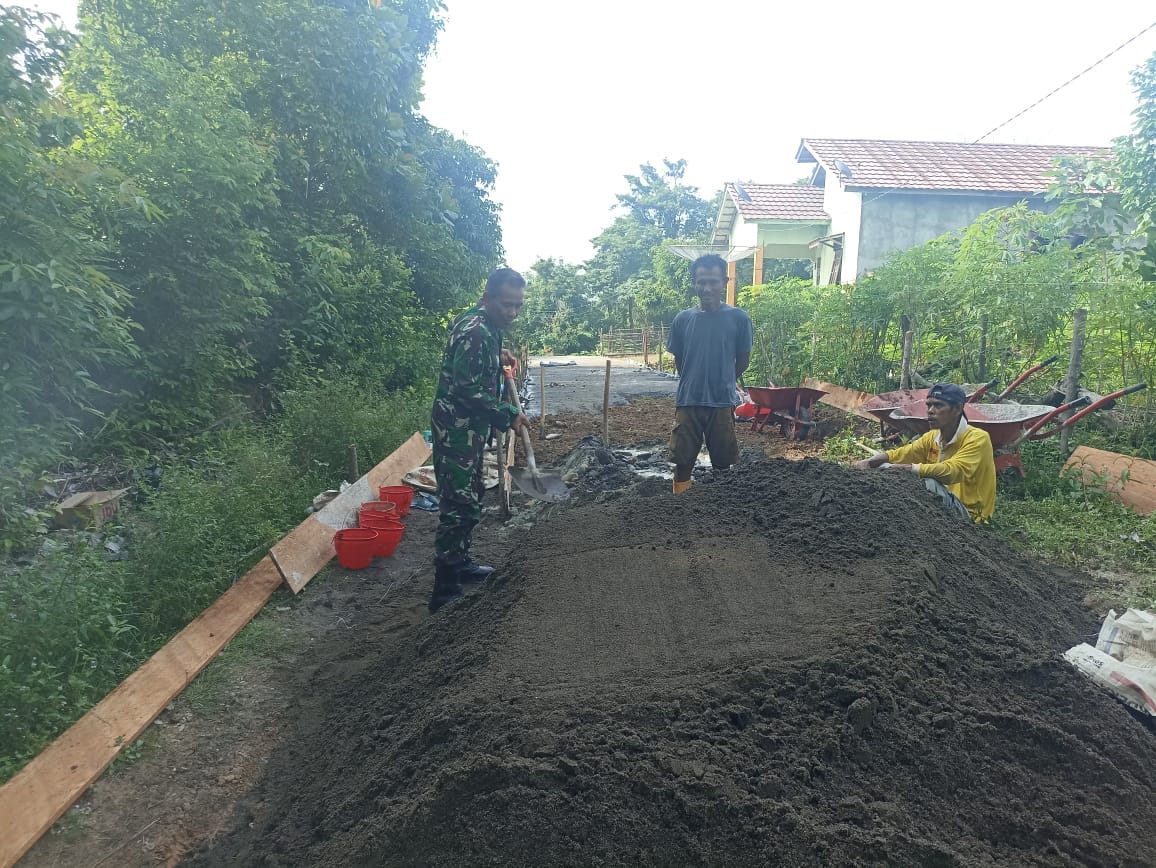 Muara Enim – Babinsa Koramil 404-05/Tanjung Enim Serma Amril ikut gotong royong membangun jalan pemukiman bersama warga Binaan di Desa Pagar Jati Kecamatan Lanang Enim Kabupaten Muara Enim.