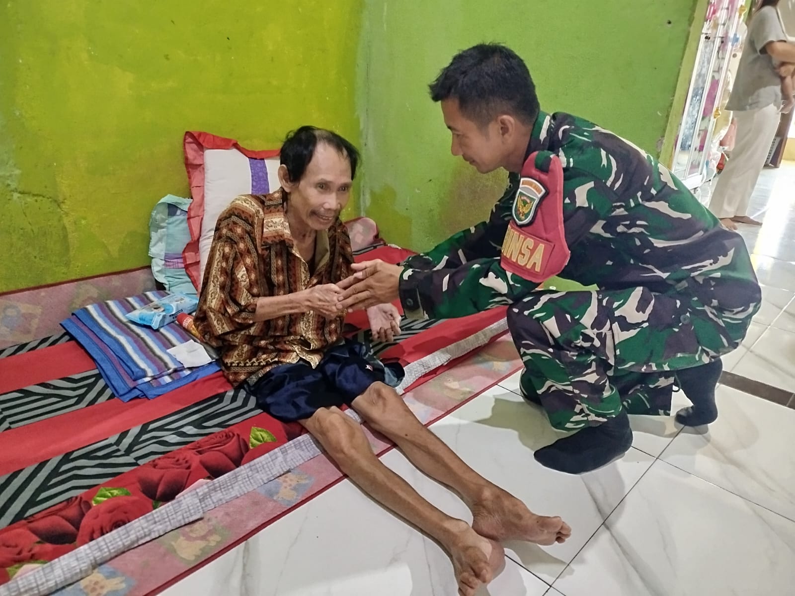 Muara Enim – Peringati hari Juang TNI AD, Babinsa Koramil 404-05/Tanjung Enim Sertu Marhadi anjangsana kerumah kediaman Masroni Usia 59 tahun yang mempunyai riwayat sakit Stroke, di Kampung II Desa Seleman Kecamatan Tanjung Agung Kabupaten Muara Enim.
