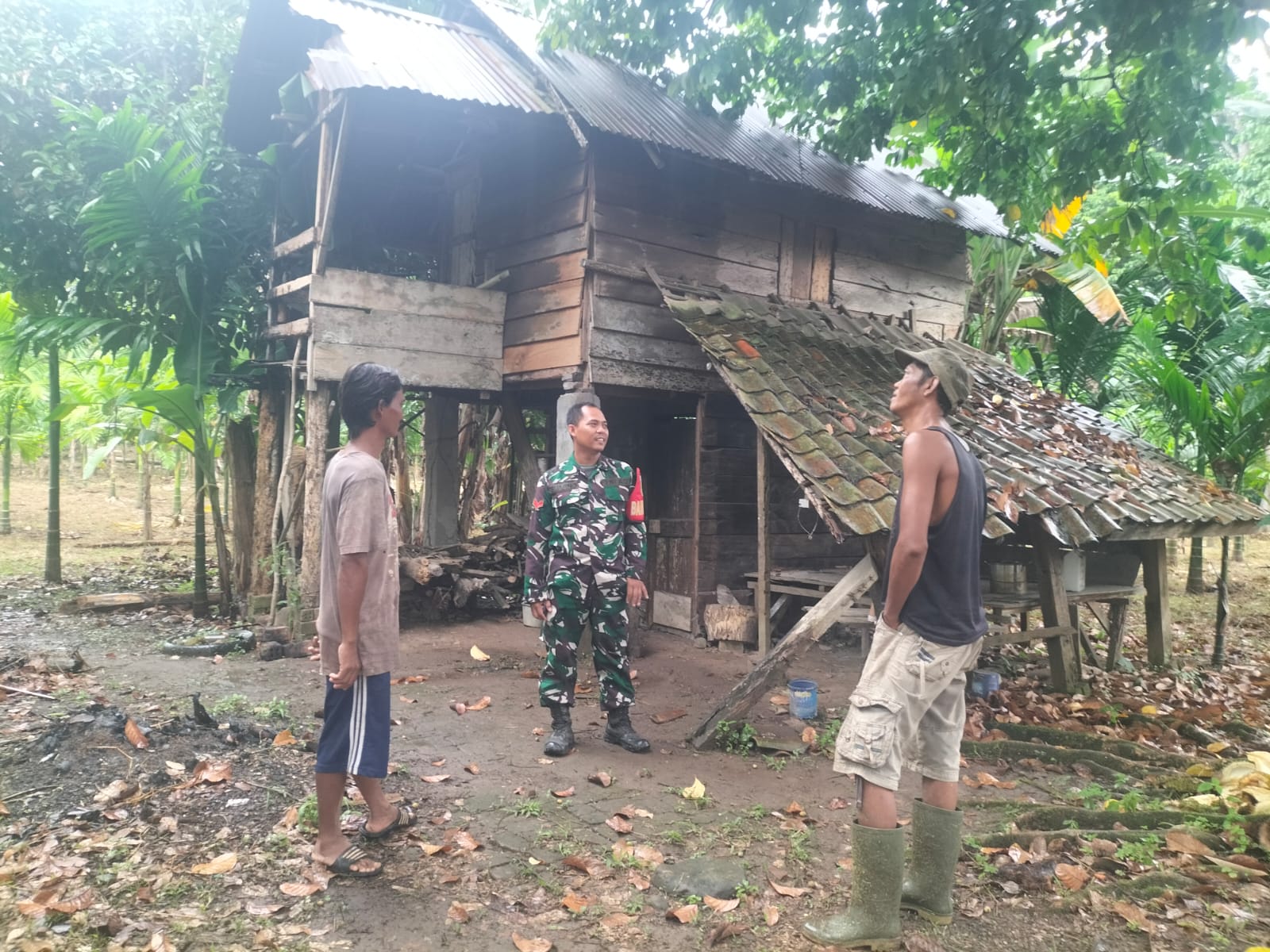 Muara Enim – Musim Hujan, Babinsa Koramil 404-05/Tanjung Enim Koptu Suarno melaksanakan kegiatan Komsos bersama warga masyarakat di daerah binaan, yang terletak di Desa Lambur Kecamatan Panang Enim Kabupaten Muara Enim, Kamis (26/12/2024).