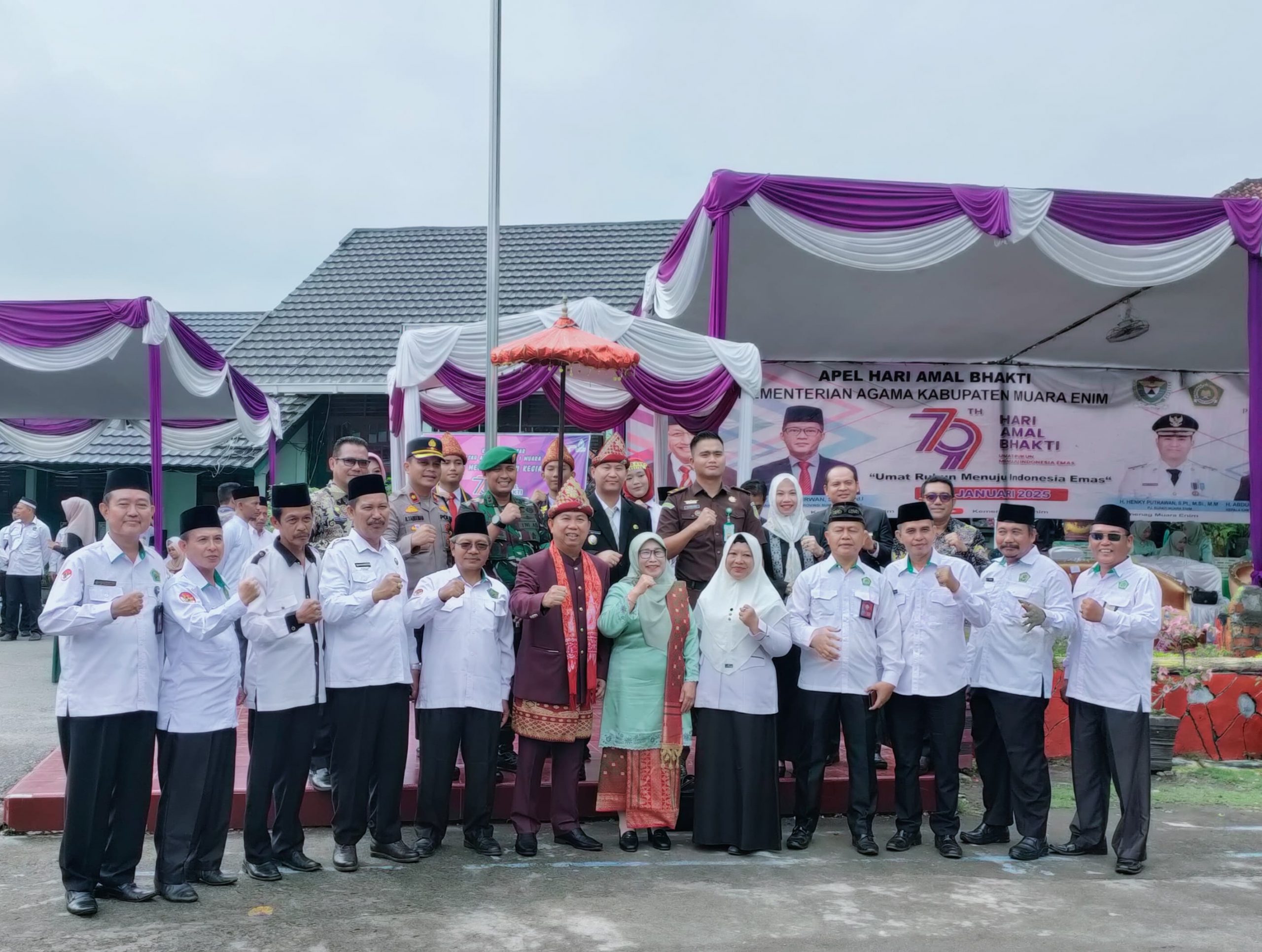 lMuara Enim, Sumatera Selatan – Upacara Peringatan Hari Amal Bhakti (HAB) Kementerian Agama Republik Indonesia ke-79 di Kabupaten Muara Enim dilaksanakan dengan khidmat, bertempat di halaman MAN 1 Muara Enim, acara ini dihadiri oleh berbagai elemen masyarakat dan pejabat pemerintah setempat.