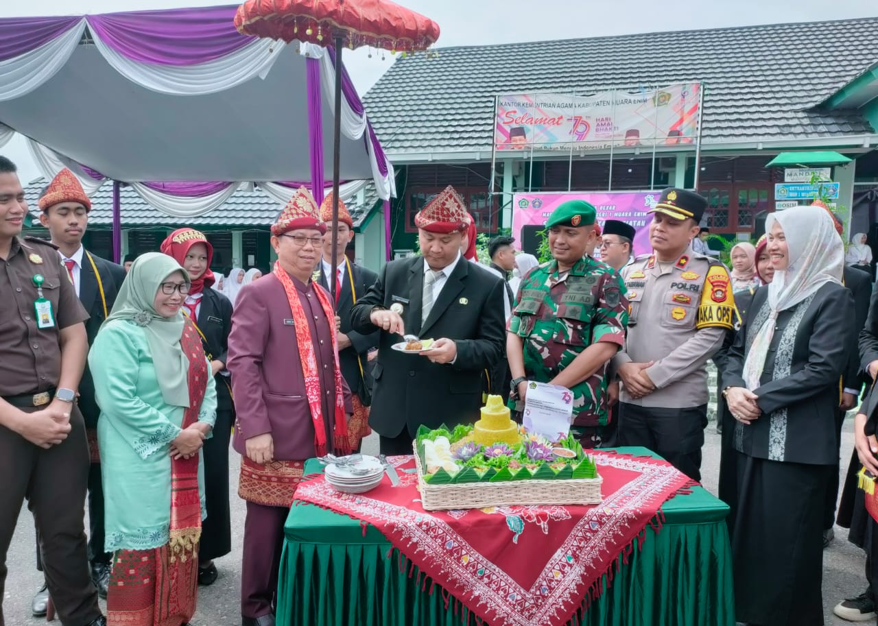 Bupati Muara Enim, H. Henky Putrawan, bertindak sebagai inspektur upacara. Dalam pidatonya, Henky menyampaikan apresiasi atas sinergi yang terjalin antara Kementerian Agama dan Pemerintah Kabupaten Muara Enim dalam mendukung misi pembangunan daerah.