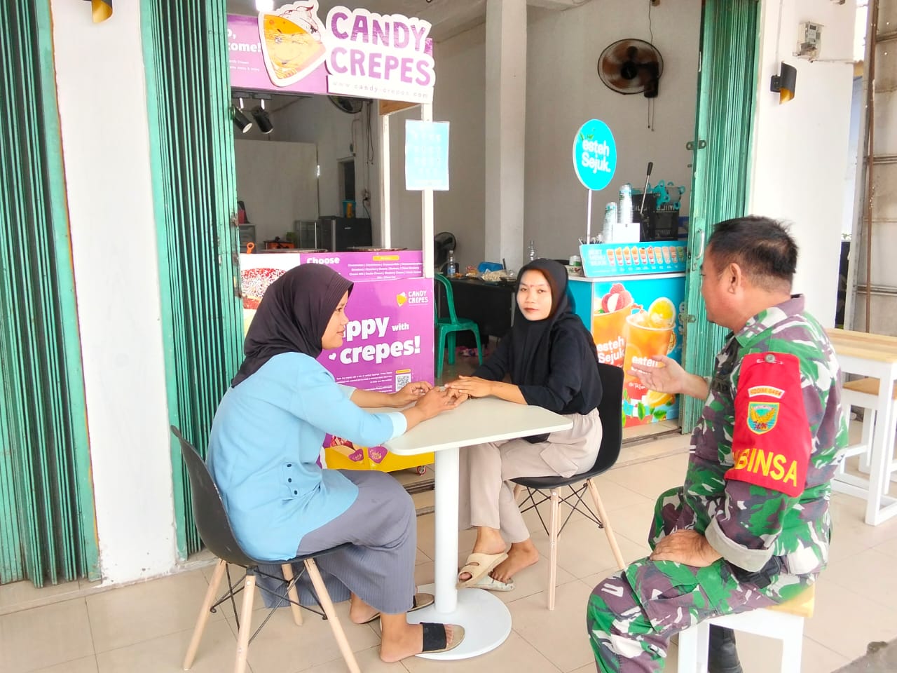 Terlihat Serda Amin saat ini melakukan Komunikasi Sosial (Komsos) dengan Pelaku Usaha UMKM ‘Candy Crepes’ milik Ibu Yana, beralamat di Dusun III RT 04 Saringan Desa Lingga Kecamatan Lawang Kidul Kabupaten Muara Enim. Minggu (5/1).