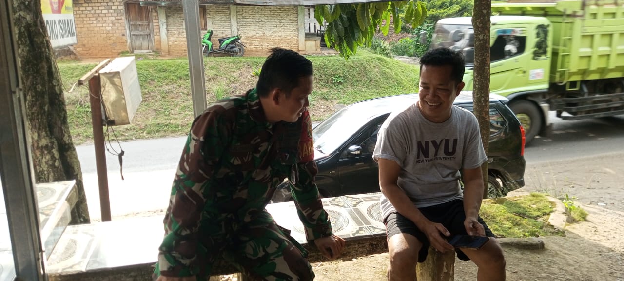 Muara Enim – Babinsa Koramil 404-05/Tanjung Enim Serda Juliantoro melaksanakan Komsos dengan masyarakat Wilayah Binaan di Desa Pandan Enim Kecamatan Tanjung Agung Kabupaten Muara Enim.