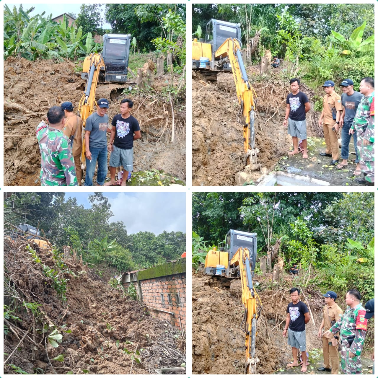 Dilaporkan Serda Amin, longsor di sebabkan hujan deras sepanjang malam sehingga tanah longsor menimpa sebuah Rumah milih Zul Agus (41) tahun, kejadian terjadi subuh sekira pukul 05.00 wib. Senin (13/1).