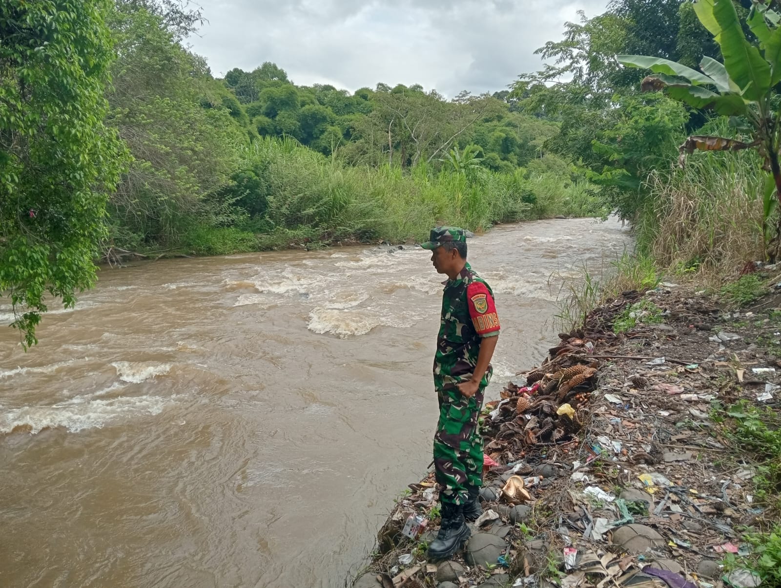 Muara Enim – Babinsa Koramil 404-05/Tanjung Enim Serka Asril Monitor perkembangan Situasi (Bangsit) Debit Air Sungai Enim yang melintas di Desa Tanjung Baru Kecamatan Panang Enim Kabupaten Muara Enim.