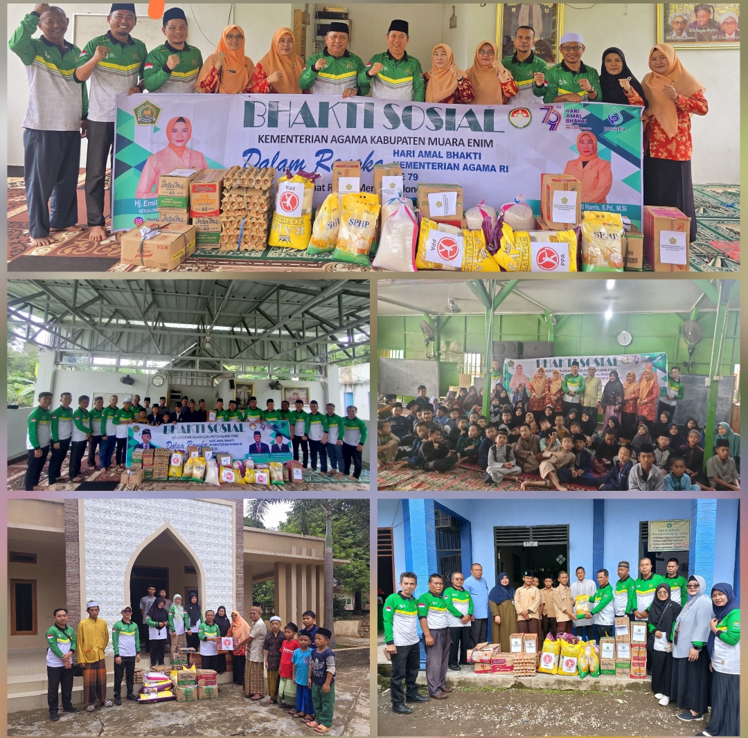 Muara Enim – Kepala Kantor Kementerian Agama Kabupaten Muara Enim H. Abdul Harris Putra di dampingi Kasubbag Tata Usaha, Mohd Bahrum para Kasi dan Penyelenggara, melakukan Kegiatan Bakti Sosial (Anjangsana) dalam rangka Hari Amal Bhakti Kementerian Agama (Kemenag) ke 79 yang mengusung tema ‘Umat Rukun Menuju Indonesia Emas’ pada hari Jum’at, (24/1/2025).
