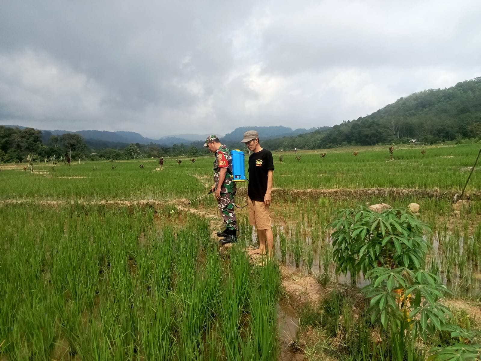 Muara Enim – Babinsa Koramil 404-05/Tanjung Enim Serma Pasli karyadi turut serta membantu warganya melaksanakan giat penyemprotan hama padi dalam membantu kegiatan Han pangan Warga desa binaannya, bertempat di dusun satu Desa Pagar Dewa Kecamatan Tanjung Agung Kabupaten Muara Enim.