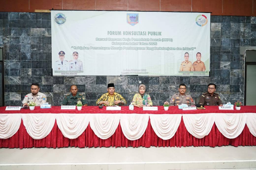 Forum ini dihadiri oleh unsur Forkopimda, staf ahli, asisten, kepala OPD, direktur RSUD, seluruh kabag, perwakilan TP-PKK dan DWP, camat, forum kepala desa, serta organisasi keagamaan. Melalui forum ini, diharapkan terwujud kesepakatan dan komitmen bersama dalam perencanaan, penganggaran, pelaksanaan, dan pengawasan pembangunan Kabupaten Lahat di tahun mendatang.