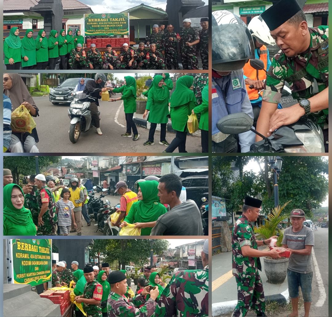 Danramil 404-05/Tanjung Enim Kapten ARH Octavian Zulkarnain ketika dibincangi awak media mengatakan bahwa giat pembagian takjil sudah sering dilakukan, kali ini di inisiasi oleh Dandim 0404/Muara Enim Letkol ARM Tri Budi Wijaya SH.