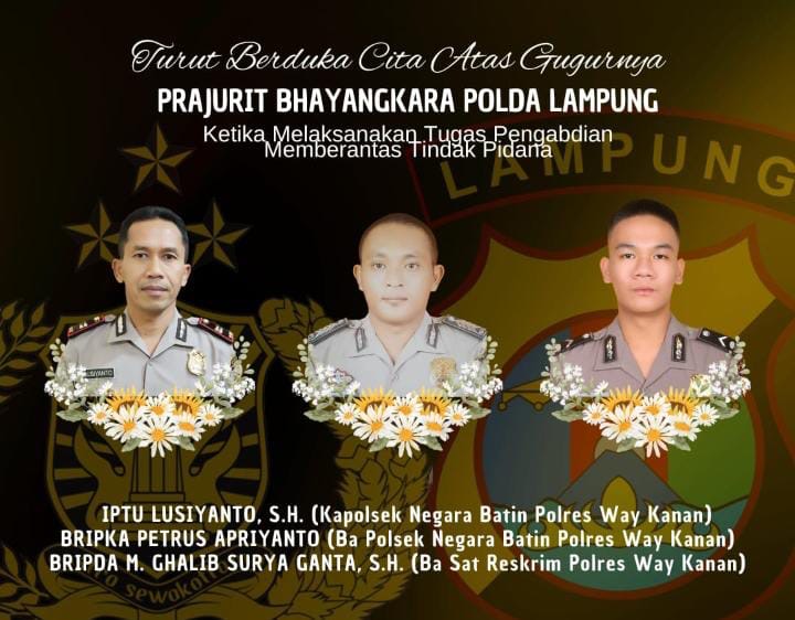 wartabianglala.com, Way Kanan – Tiga anggota kepolisian dari Polres Way Kanan gugur saat menjalankan tugas dalam penggerebekan lokasi perjudian sabung ayam di Kampung Karang Manik, Kecamatan Negara Batin, Kabupaten Way Kanan, Provinsi Lampung, pada Senin (17/3/2025) sekitar pukul 16.50 WIB.
