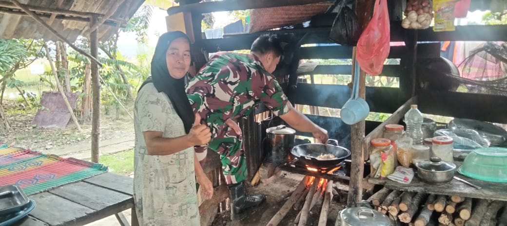Terlihat jalinan itu, merupakan bukti kedekatan Babinsa Serka Agus Fery Irawan dengan Ibu Yuniar warga desa binaan nya ibu Yuniarti