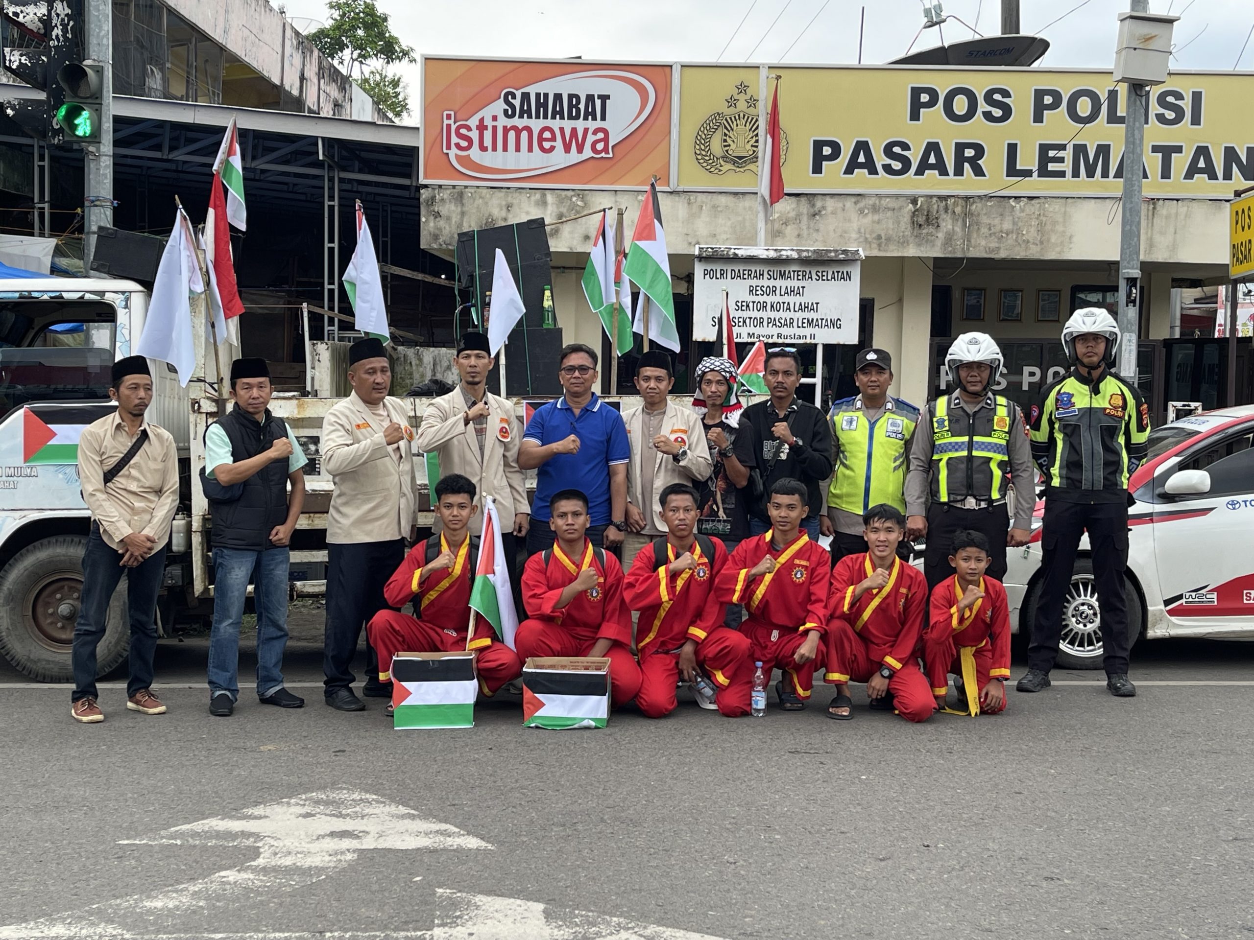 Sejak pukul 08.00 WIB, peserta aksi berkumpul dengan mengenakan atribut khas Muhammadiyah dan bendera Palestina. Diiringi pekikan takbir dan yel-yel dukungan terhadap perjuangan rakyat Palestina, barisan berjalan rapi dan tertib, dikawal langsung oleh pihak Kepolisian dari Polres Lahat. Suasana penuh semangat namun tetap menjaga ketertiban dan keselamatan.