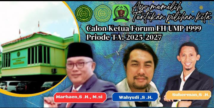 Jadwal Pemilihan Suara direncanakan Awal Mei 2025 Calon Kandidat Ketum Forum FH UMP 99 yang bersedia menyatakan maju ada 3 (tiga) Calon Kandidat yaitu :