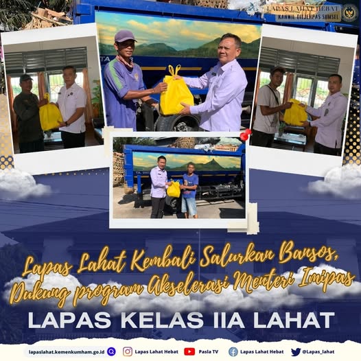 Lahat, 16 Juli 2025 – Lembaga Pemasyarakatan (Lapas) Kelas IIA Lahat kembali menunjukkan komitmennya dalam mendukung program Akselerasi Menteri Imigrasi dan Pemasyarakatan dengan menyalurkan bantuan sosial berupa paket sembako kepada masyarakat sekitar dan keluarga warga binaan yang membutuhkan.