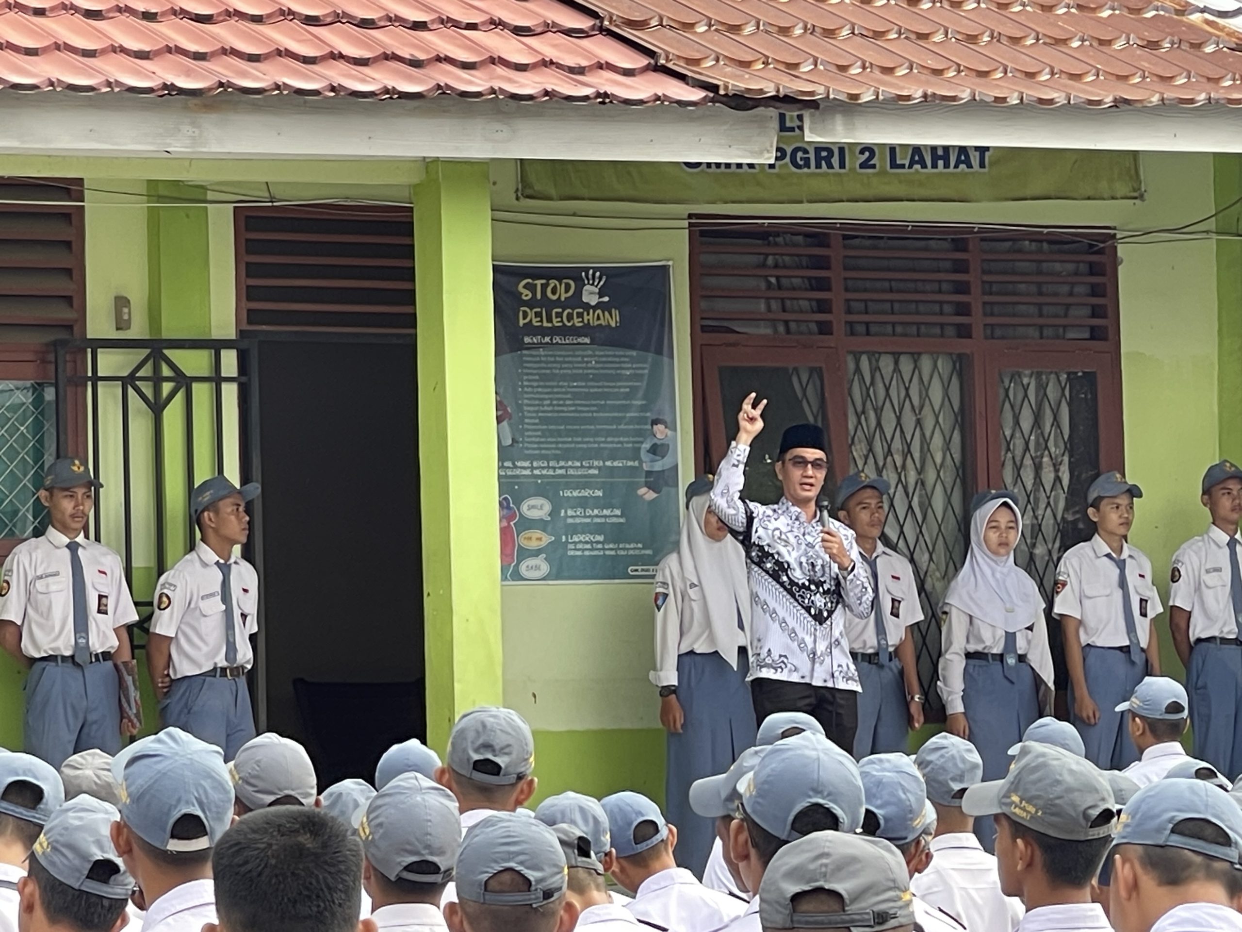 wartabianglala.com, Lahat – Ketua Persatuan Guru Republik Indonesia (PGRI) Kabupaten Lahat, Dr. Hasperi Susanto, S.Pd., M.M, bersama Sekretaris PGRI Lahat Johan Kapri, M.Pd, dan Wakil Ketua Herwansyah, S.Pd, hadir dalam upacara pengibaran bendera di Kampus B SMK PGRI 2 Lahat pada Senin (4/8/2025). Dalam kesempatan tersebut, Dr. Hasperi bertindak sebagai pembina upacara sekaligus memberikan pembinaan langsung kepada para siswa.