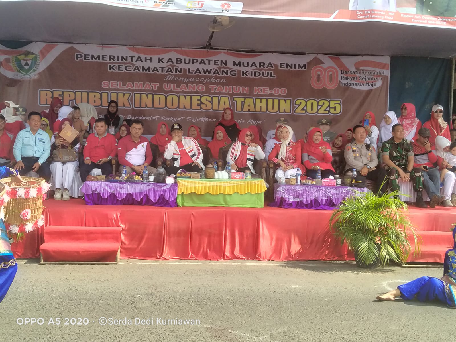 Karnaval dihadiri langsung Bupati Muara Enim H Edison SH M Hum, didampingi Camat Lawang Kidul Drs Edi Susanto MM, Danramil Tanjung Enim Kapten ARH Octavian Zulkarnain. Sabtu (16/8).