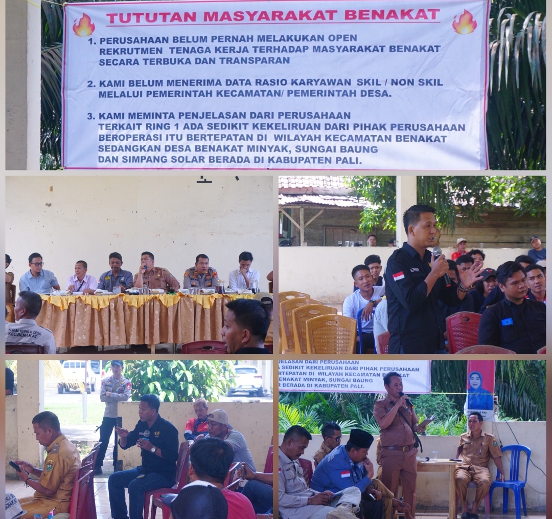Muara Enim – Masyarakat Kecamatan Benakat melakukan Mediasi dalam rangka Tuntutan Tenaga Kerja Ring I (Satu) pada Perusahaan yang ada di Wilayah Kecamatan Benakat, di Kantor Pemerintah Kecamatan Benakat Kabupaten Muara Enim.