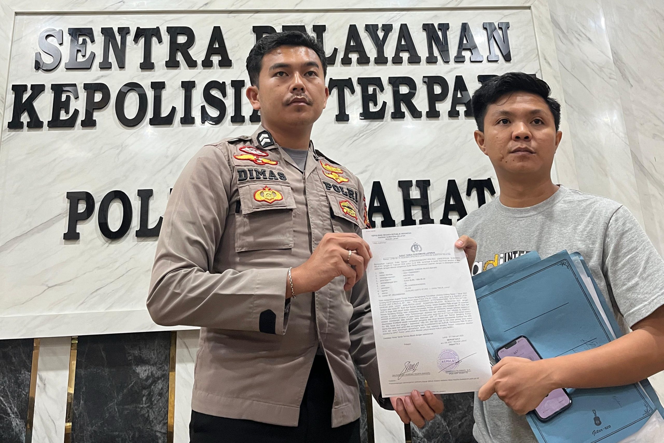 Laporan tersebut tercantum dalam Surat Tanda Penerimaan Laporan (STPL) Nomor: LP/B/65/II/2026/SPKT/Polres Lahat/Polda Sumatera Selatan, yang dibuat dan ditandatangani pada Jumat, 7 Februari 2026, sekitar pukul 15.04 WIB, bertempat di Kantor Polres Lahat.