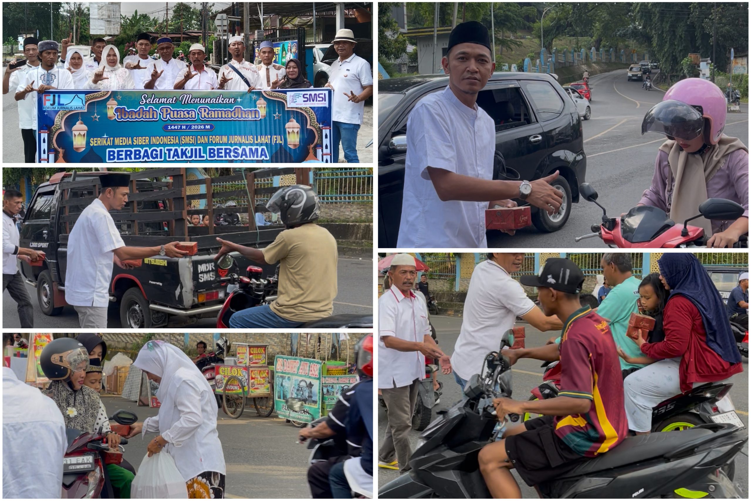 Hari itu bukan sekadar hari Sabtu biasa. Bagi keluarga besar Serikat Media Siber Indonesia (SMSI) Kabupaten Lahat, momen ini adalah tonggak sejarah, yakni milad ke-9 tahun berdirinya organisasi perusahaan media siber terbesar di tanah air. Namun, alih-alih merayakannya dengan kemewahan di balik dinding beton, mereka memilih jalanan. Mereka memilih debu, senyum para pengemudi, dan jabat tangan hangat dengan masyarakat. Bersama Forum Jurnalis Lahat (FJL), SMSI merajut silaturahmi di atas aspal, membagikan ratusan bingkisan takjil sebagai simbol bahwa jurnalisme tak boleh berjarak dari nadi kehidupan rakyat.