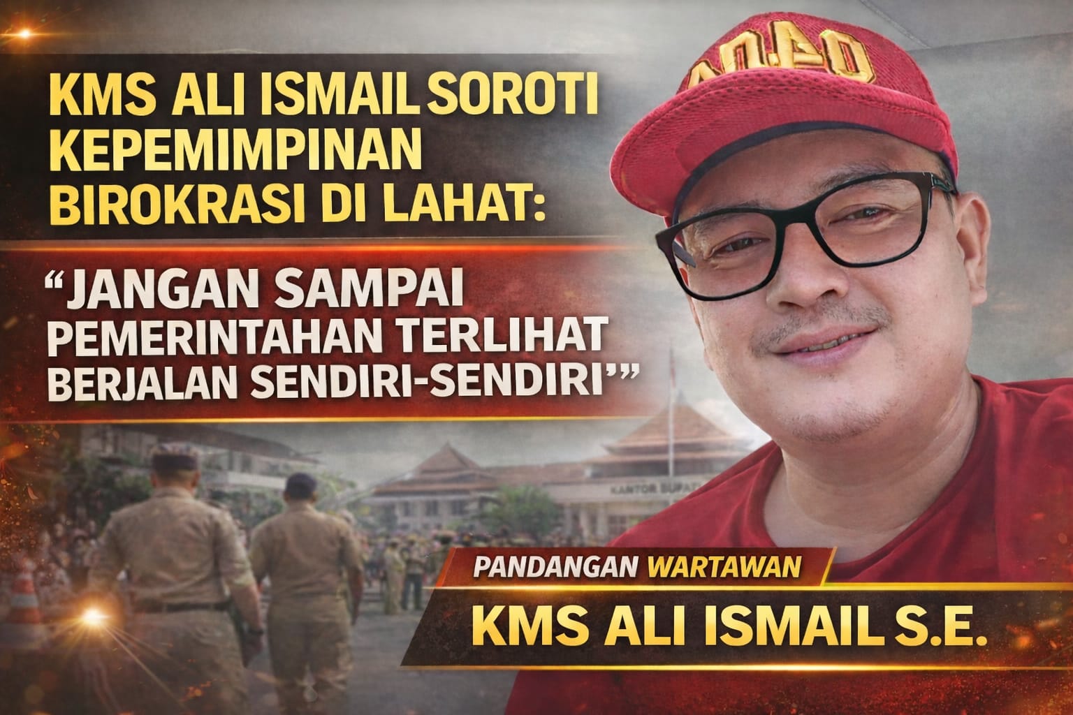 Lahat – Dinamika kepemimpinan di lingkungan birokrasi Kabupaten Lahat belakangan menjadi perhatian sejumlah kalangan, termasuk dari insan pers. Salah satunya datang dari wartawan senior, KMS Ali Ismail SE, yang menilai kepemimpinan birokrasi harus mampu menghadirkan arah yang jelas serta menjaga soliditas di tubuh pemerintahan.