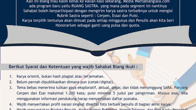 Halo, sahabat Biang! Kami membuka rubrik baru bertajuk Ruang Sastra untuk para pembaca sekalian. Kami membuka […]